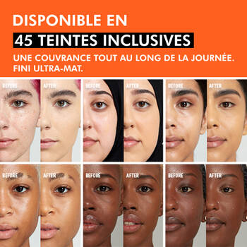 Un fond de teint liquide longue tenue, qui garde ta peau mate et impeccable toute la journée. Fais ton choix parmi les 45 teintes ultra-précises.